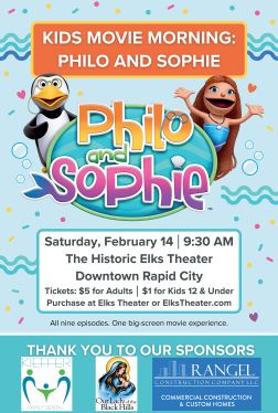 KID’S MOVIE AT THE ELKS!! Healing the Culture presents Philo and Sophie -- the zany children’s show with a Christian message. Join us Saturday, February 14th at 9:30am for a morning of family fun, and meet the actors, puppets, and crew in-person! $5 for teens and adults, $1 for kids 12 and under.